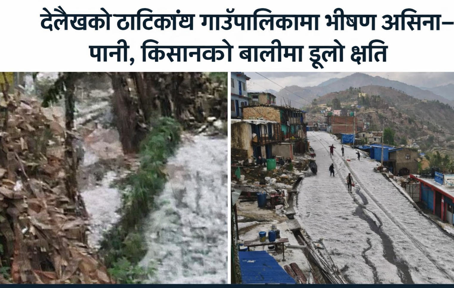 दैलेख — ठाटीकाँध गाउँपालिका मा परेको भीषण असिना–पानीका कारण स्थानीय किसानहरू गम्भीर समस्यामा परेका छन्। बालीनाली भित्र्याउने समयमै आएको प्राकृतिक विपत्तिले किसानको वर्षदिनको मेहनत एकैछिनमा नष्ट गरेको छ।
